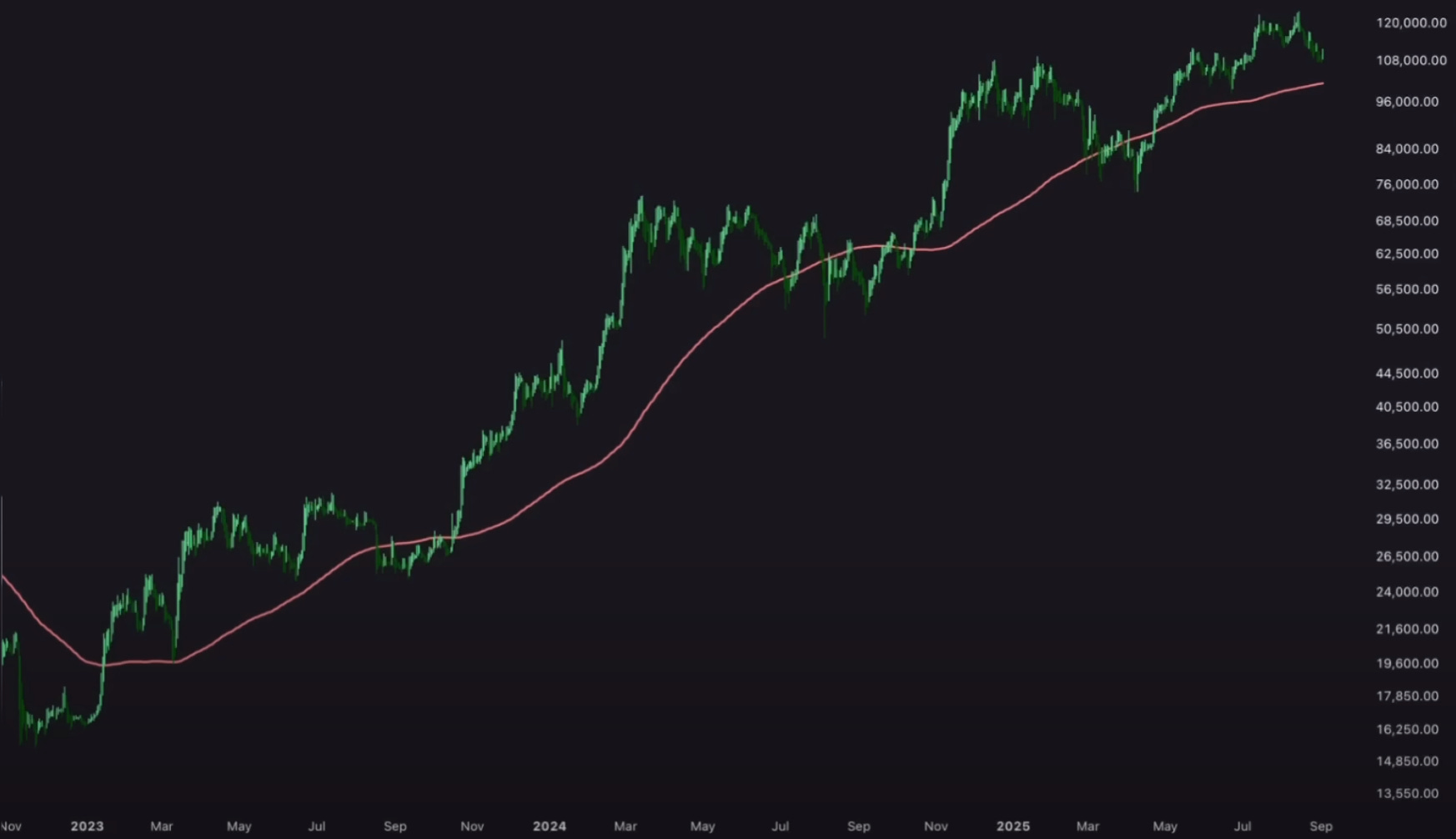 Esta media móvil de 200 días se encuentra actualmente en $101.000. Y creo que es un nivel bastante importante que mantener. No solo técnicamente, sino también psicológicamente.