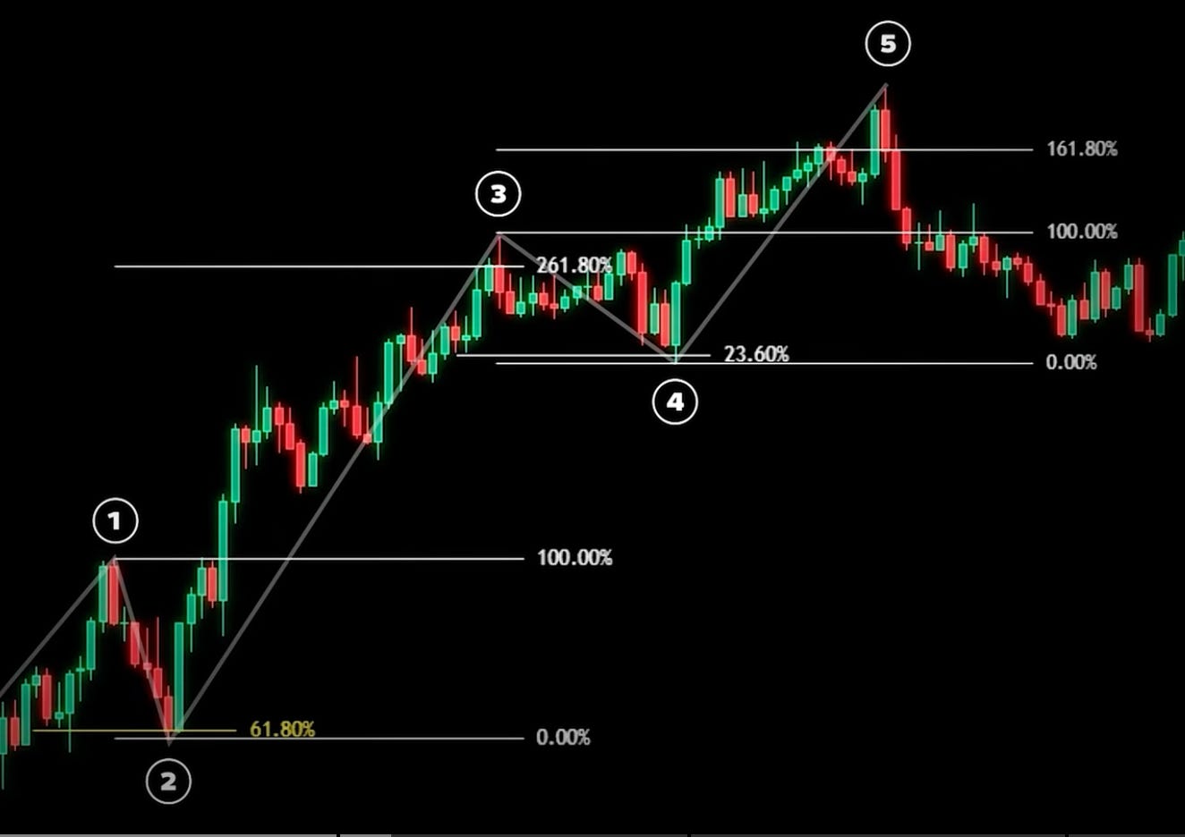 Y la onda 5 suele ser igual al 100% de la onda 1 o extenderse hasta el 161,8 % de su extensión media.